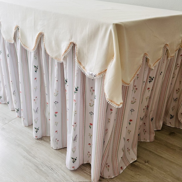 Além disso, o tecido utilizado no babado permite secagem rápida, amassados mínimos e otimiza a prática de passar o tecido, tornando-se uma peça artesanal exclusiva pronta para uso.