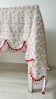 Não acompanha a toalha de babados . Valor referente somente a toalha de morangos sobrepor.