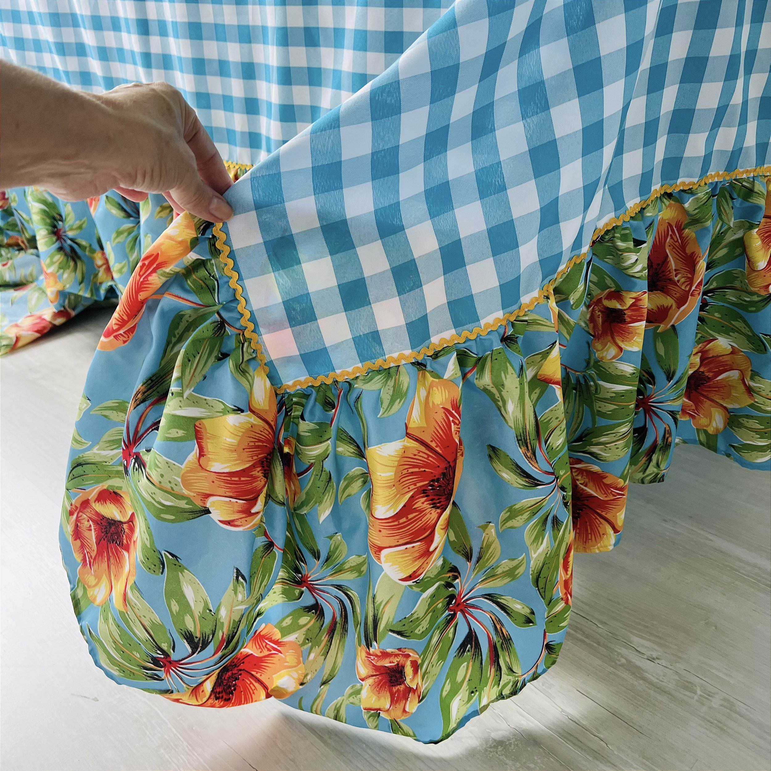 Babado em chita tecido 100% poliéster com 35 cm de largura em cada extremidade.